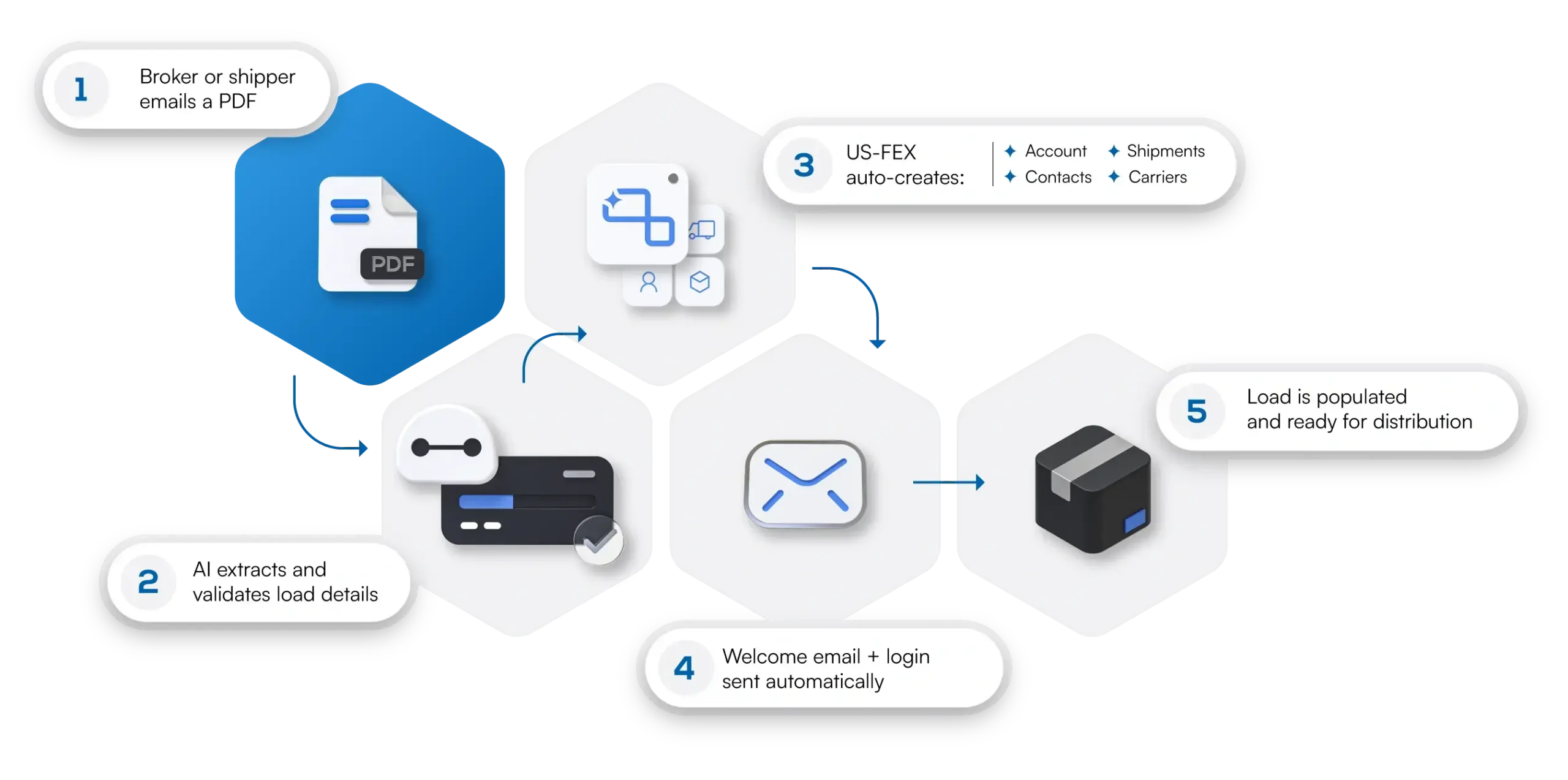 US-FEX automates freight intake, setup, and load distribution for brokers and shippers — no spreadsheets, no manual setup, no delays.