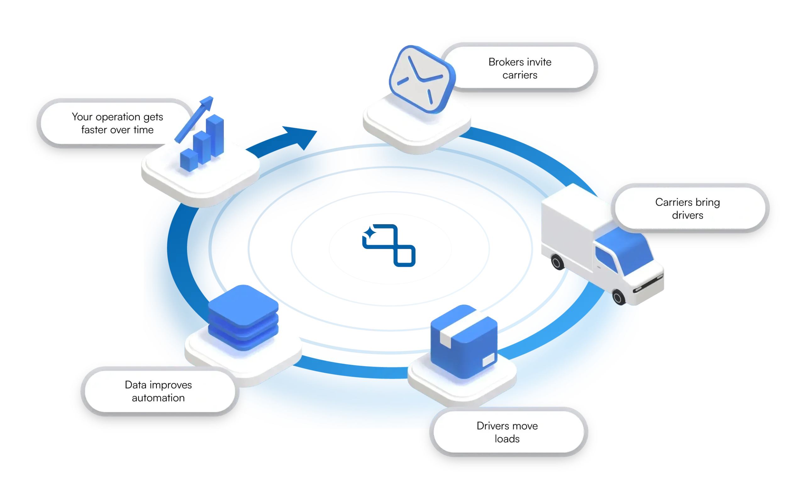 - Every load, carrier, and driver in one view